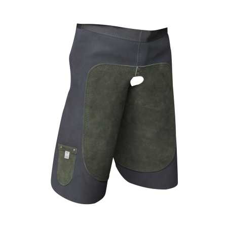 Even cheaper and still of excellent quality! A perfect model for horse owners, veterinarians or farrier trainees. Double-layered, soft split leather design. The fasteners behind the leg and the belt are fastened with quick-release buckles. Short cut: protection up to the knees. Lightweight, very comfortable and beautiful presentation.