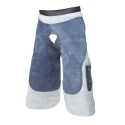 The best value for money. Long professional farrier apron, made with dual thickness, soft and strong leather model, manufactured with the best quality. 2 knives pockets. One strong & thin magnet under leather protection. Quick-fastenings behind the legs and waist. Blue colour with grey thighs. Very strong and nice looking for the cheapest price. Weight 1.6 kg.