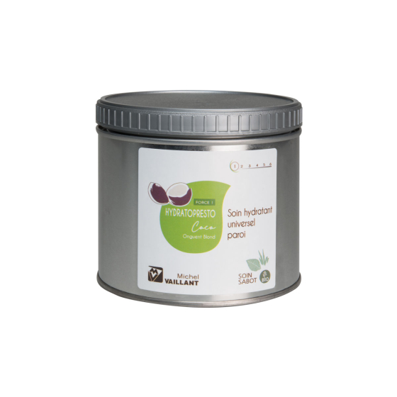 Finally, the blond ointment HydratoPresto Coco Force 1 actively contributes to healthy hoof growth. By maintaining adequate hydration, it promotes the regular growth of the horn.