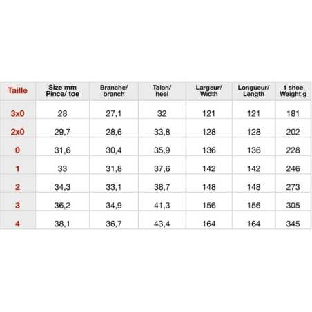 Model designed by Professor Jean-Marie Denoix. Shoe with wide cover, onion heels and double bevel. Front shape. Made from hi-tech aluminium alloy. Non-tempered alloy: can be used for risk-free hot shoeing up to 450°C 3 clips to allow use with option of 1 or 2 clips. Thickness 12 mm.