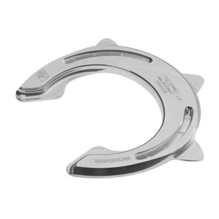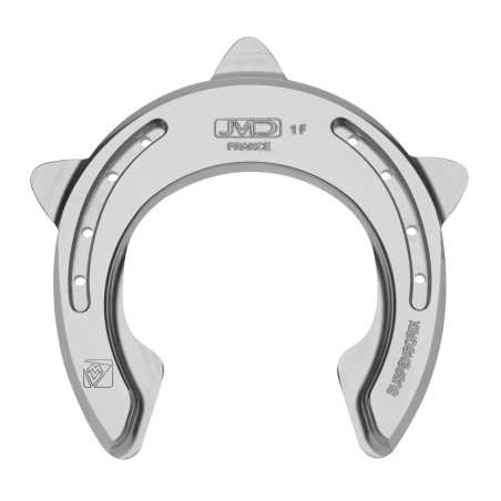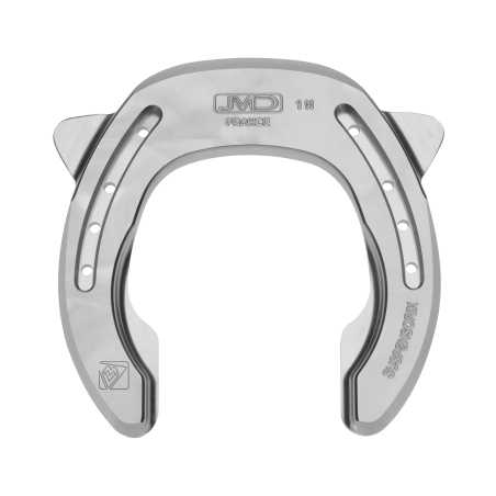 Model designed by Professor Jean-Marie Denoix. Shoe with wide toe and narrow bevelled branches. Designed using hi-tech aluminium alloy. Non-tempered alloy: can be used for risk-free hot shoeing up to 450°C. 3 clips to allow use with option of 1 or 2 clips. Thickness 10 mm.