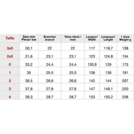 PRINCIPLE AND INTERACTION WITH THE GROUND : On compacted and penetrable grounds : Large anterior ground bearing surface surface to limit toe penetration. Narrow bevelled branches to increase heel penetration. Enlarged surface in contact with foot at heels for greater comfort. Slightly bevelled outer rim at toe to facilitate rolling.
