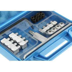 Mini-mallette bleue comprenant un assortiment de crampons standard répartis en deux tailles, bouchons et clés.