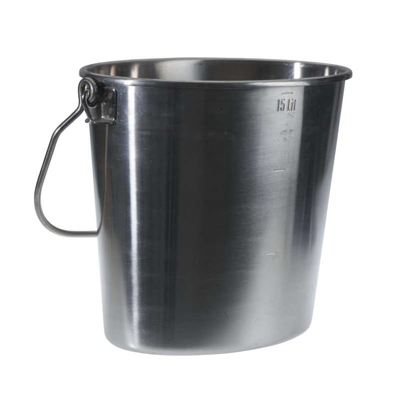 Seau en acier inoxydable, hygiénique, chic et à toute épreuve. Idéal pour refroidir les fers. Capacité 15 L.