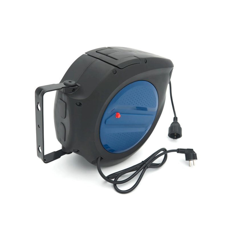 L’enrouleur automatique IP20, doté d’un câble de 20 mètres, offre une solution pratique et sécurisée pour l’alimentation électrique. Son système d’enroulement automatique permet de rétracter le câble facilement, évitant les nœuds et le désordre. Avec une puissance maximale de 3200 W en câble déroulé, il convient parfaitement aux outils et machines électriques exigeants. Le verrouillage à clic assure un maintien optimal du câble, tandis que la sécurité thermique intégrée protège contre les risques de surchauffe. Pour un confort d’utilisation supplémentaire, l’enrouleur est muni d’un crochet métallique et d’un support pivotant à 180°, idéal pour une fixation au mur ou dans un véhicule atelier.