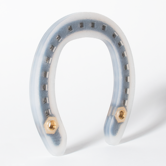 Les fers GTH sont fabriqués à partir d’une plaque d’acier fine et légère, recouverte d’une couche de 9 mm de TPU (polyuréthane thermoplastique). Selon les besoins du cheval, trois niveaux de dureté du TPU sont disponibles.