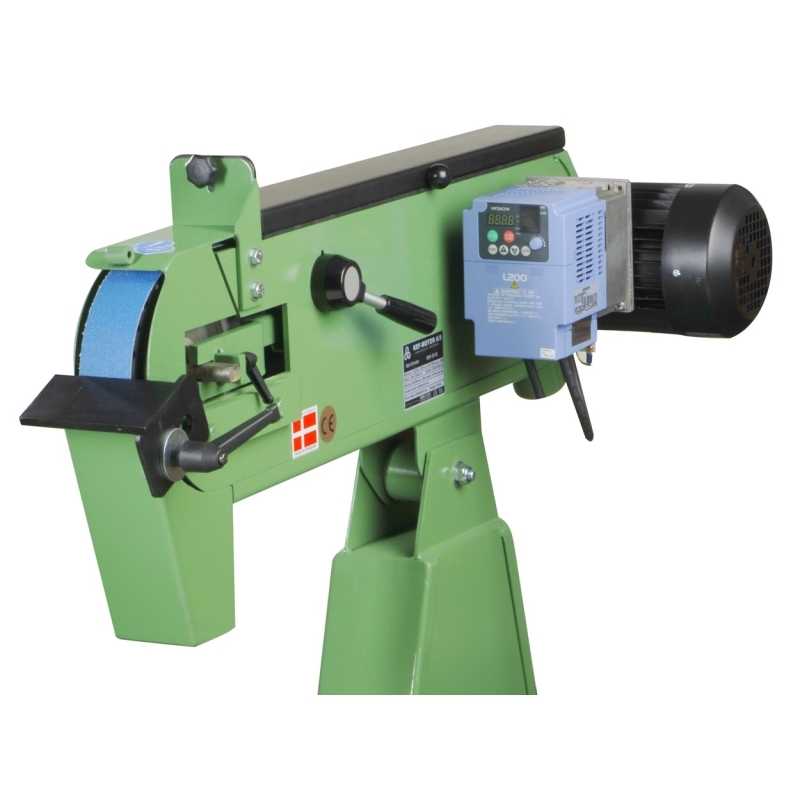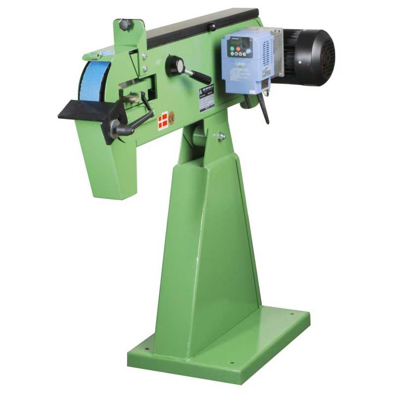 Backstand de ponçage monté sur pied, utilisant des bandes abrasives de 50 x 2000 mm. Moteur de 1,1 kW (1,5 cv) - 220 volts monophasé ou 400 volts triphasé.