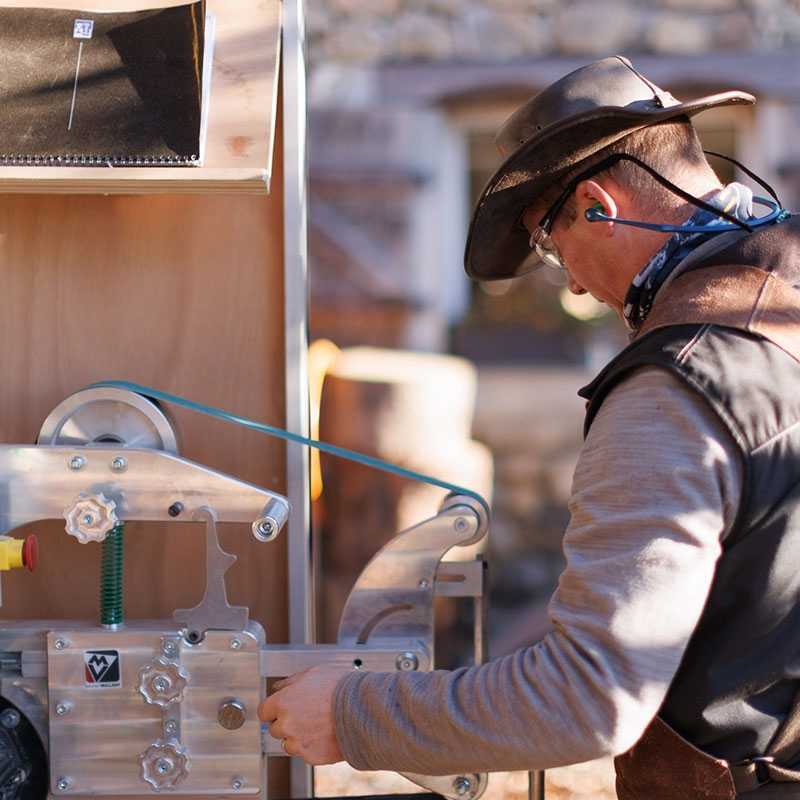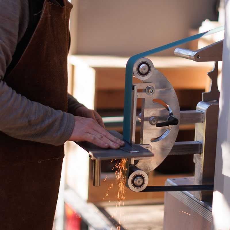 Sa grande versatilité en fait la machine de base du coutelier mais se révèle parfaitement indispensable dans tous les ateliers de mécanicien, ferronnier ou serrurier, pour tous travaux de détourage, ébavurage, finition, affûtage, quels que soient les matériaux utilisés. Permet d’évoluer dans la fabrication artisanale de couteaux jusqu’au stade professionnel, en travaillant la lame à partir d’une plaque par enlèvement de matière (stock removal) ou à partir d’ébauches forgées.