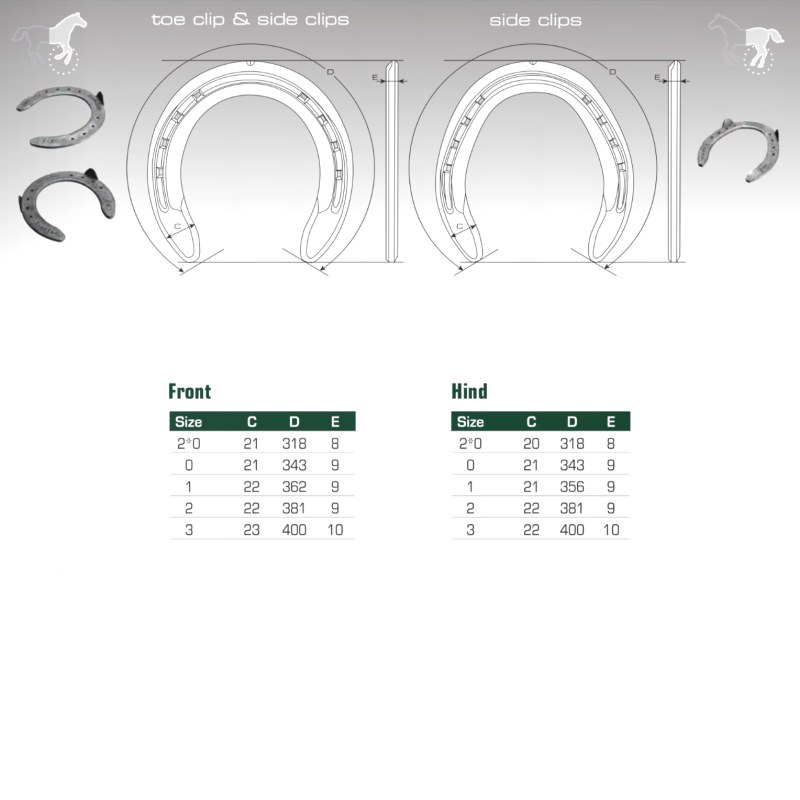 Fer pour chevaux de sport. Conception légère en acier. Rive externe entièrement biseautée pour favoriser le rolling en ligne droite et en virage. Excellente finition.