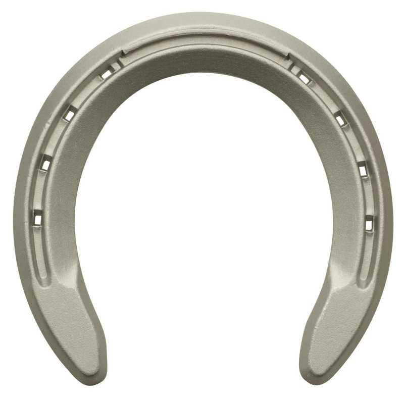 Fers antérieurs à 2 pinçons. Disponibles également en tournure postérieure. Dimensions identiques aux fers "Eventer" acier et "Future". Grappe en acier pour éviter une trop forte usure. Petites déformation à froid possible. Forge à chaud T° maxi = 420°C avec risque de perte de dureté. Etampures américaines. Clous conseillés : ASM 4,5.