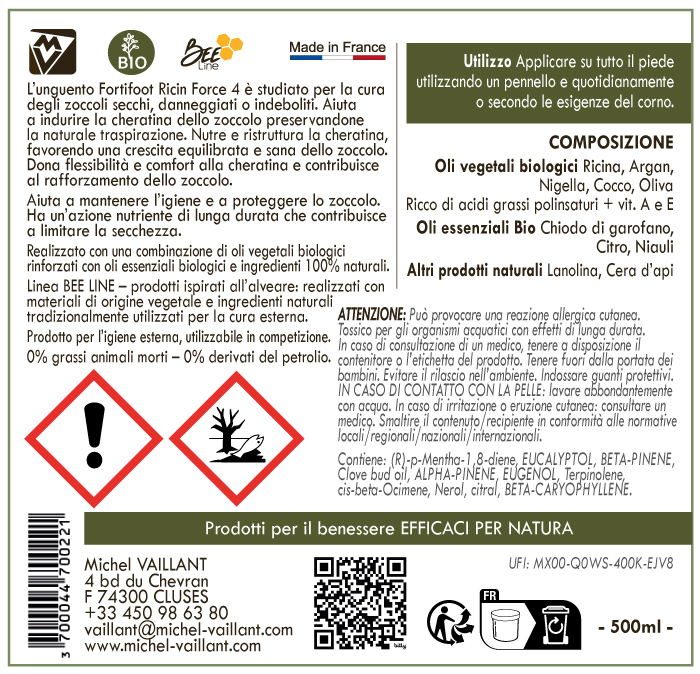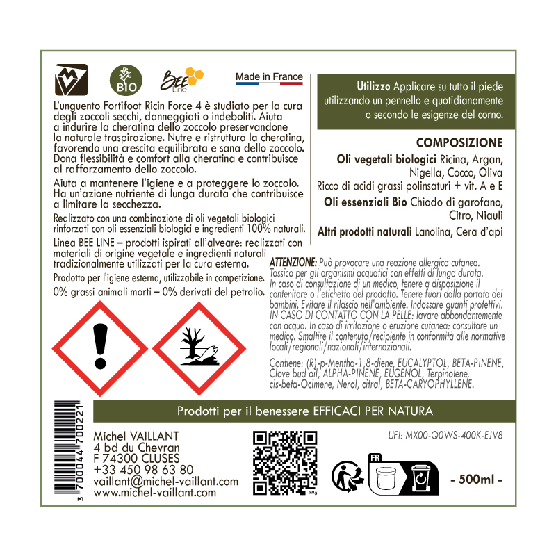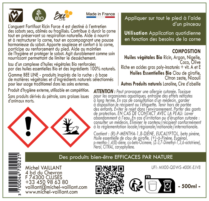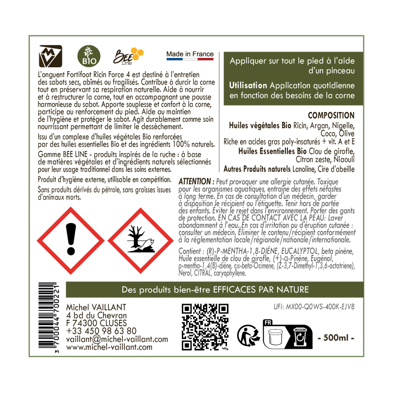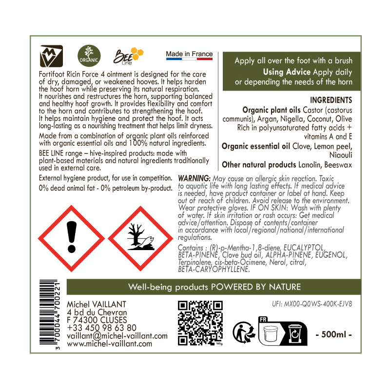 L’onguent Fortifoot Ricin Force 4 est conçu pour l’entretien régulier des sabots secs ou fragilisés.