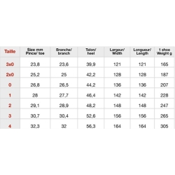 CONCEPT ET RÉACTIONS AU SOL : Large couverture en contact avec le pied et oignons en talons pour répartir les charges. Limite l’enfoncement des talons sur sol pénétrable et dense. Protège les barres et les talons. Répartit les charges. Gros biseau sur la rive externe pour favoriser le roulement.