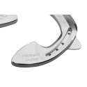 Modèle dessiné par le Pr. Jean-Marie Denoix. Fer présentant une pince couverte avec un large double biseau pour reculer ainsi le centre d’appui du fer (diminution du levier digital). Fer à oignons, avec couverture très élargie en talons. Tournure postérieure. Alliage aluminium high-tech à haute résistance mécanique. Nuance non-trempée, pouvant être forgé à froid ou à chaud (jusqu’à 450°C) sans aucune perte de dureté. 2 pinçons latéraux. Épaisseur 10 mm.