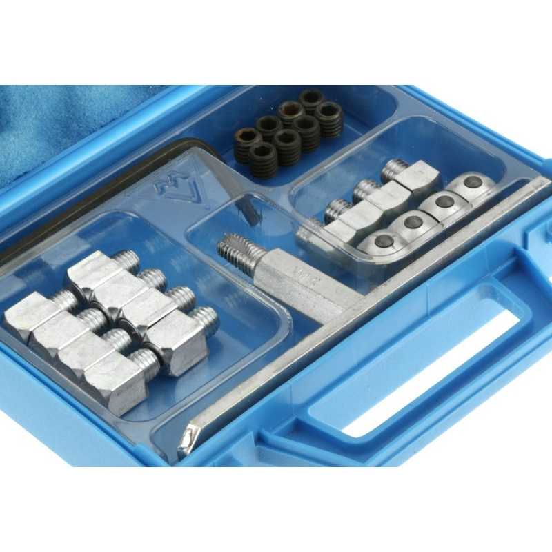 Mini-mallette comprenant un assortiment de crampons filetage M8x125 répartis en deux tailles, bouchons et clés nécessaires au montage-démontage et à la réfection du taraudage.