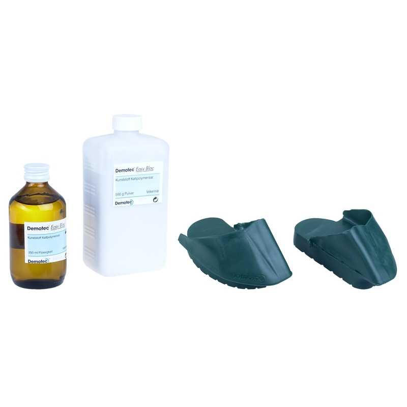 Semelles parfaitement modelées au point de vue anatomique, dimensions généreuses. Conçues pour s’ajuster à toutes les tailles d’onglons, sans gêner l’animal. Le kit contient : 6 easy blocs droits + 6 gauches + le nécessaire de collage.