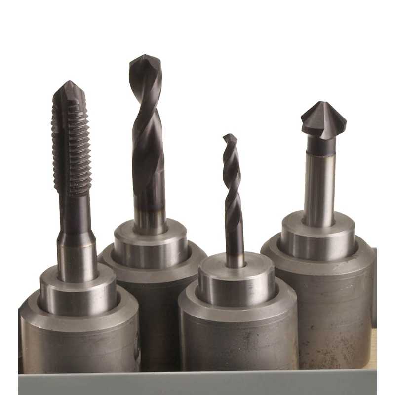 Mandrin quick inclus : changement ultra-rapide des outils. Vos forets, fraise à chanfreiner et taraud sont montés directement sur des portes-outils individuels. Il vous suffit de tourner le mandrin Quick d’1/4 de tour et d’engager (ou de dégager) le porte-outil pour le mettre en place (ou l’enlever). Vous gagnez énormément de temps en toute facilité !