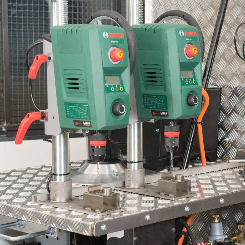 Son mandrin automatique de précision, sans clé, assure un maintien ferme et sécurisé du foret, tandis que le support de fer permet de maintenir une grande variété de fer à cheval, garantissant un perçage net et stable.