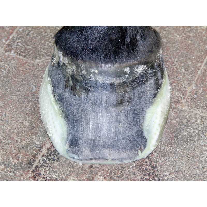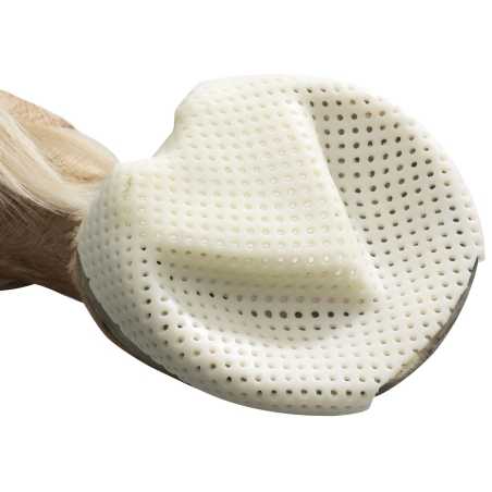 0/5MV Second" Sole Race est une plaque de protection thermoformable spécialement adaptée pour les pieds des chevaux. Après avoir été plongée pendant environ une minute dans l’eau bouillante (minimum 75 °C), elle devient malléable et se moule sur le pied en épousant parfaitement la voûte, la fourchette et les lacunes.