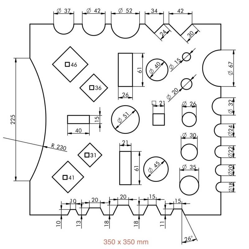 Option : - Table haut. 800 mm pour le plateau à trous 350 x 350 mm.