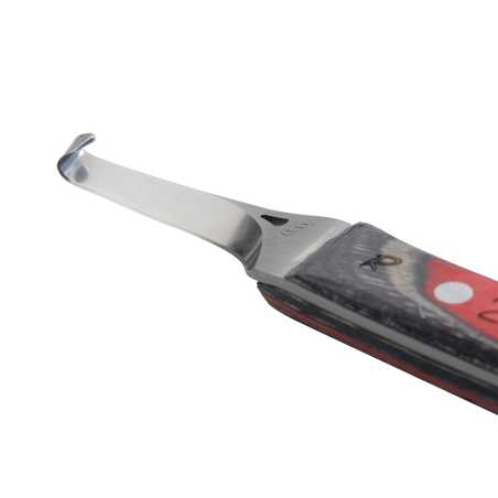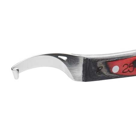 Renette à lame droite incurvée en acier supérieur et manche en bois ergonomique.