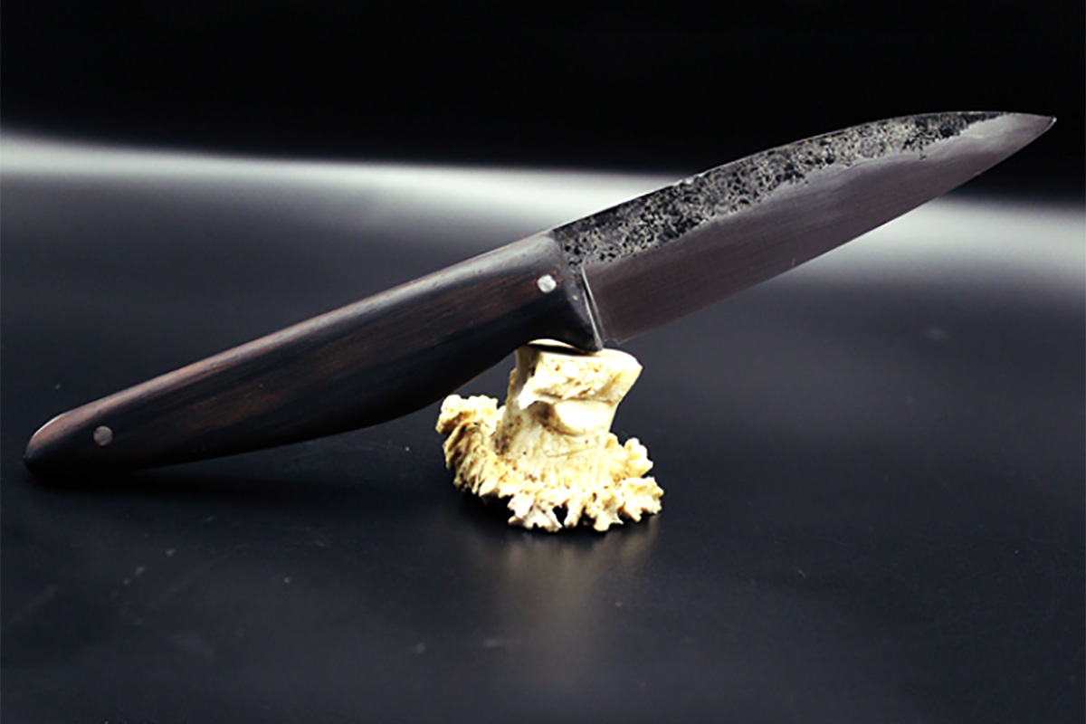 Florian a passé dix ans dans la fabrication de coffrets et d’écrins de luxe avant de se tourner vers la forge, où il combine sa maîtrise du bois avec le travail du fer pour créer des couteaux uniques.