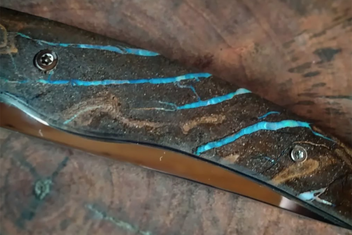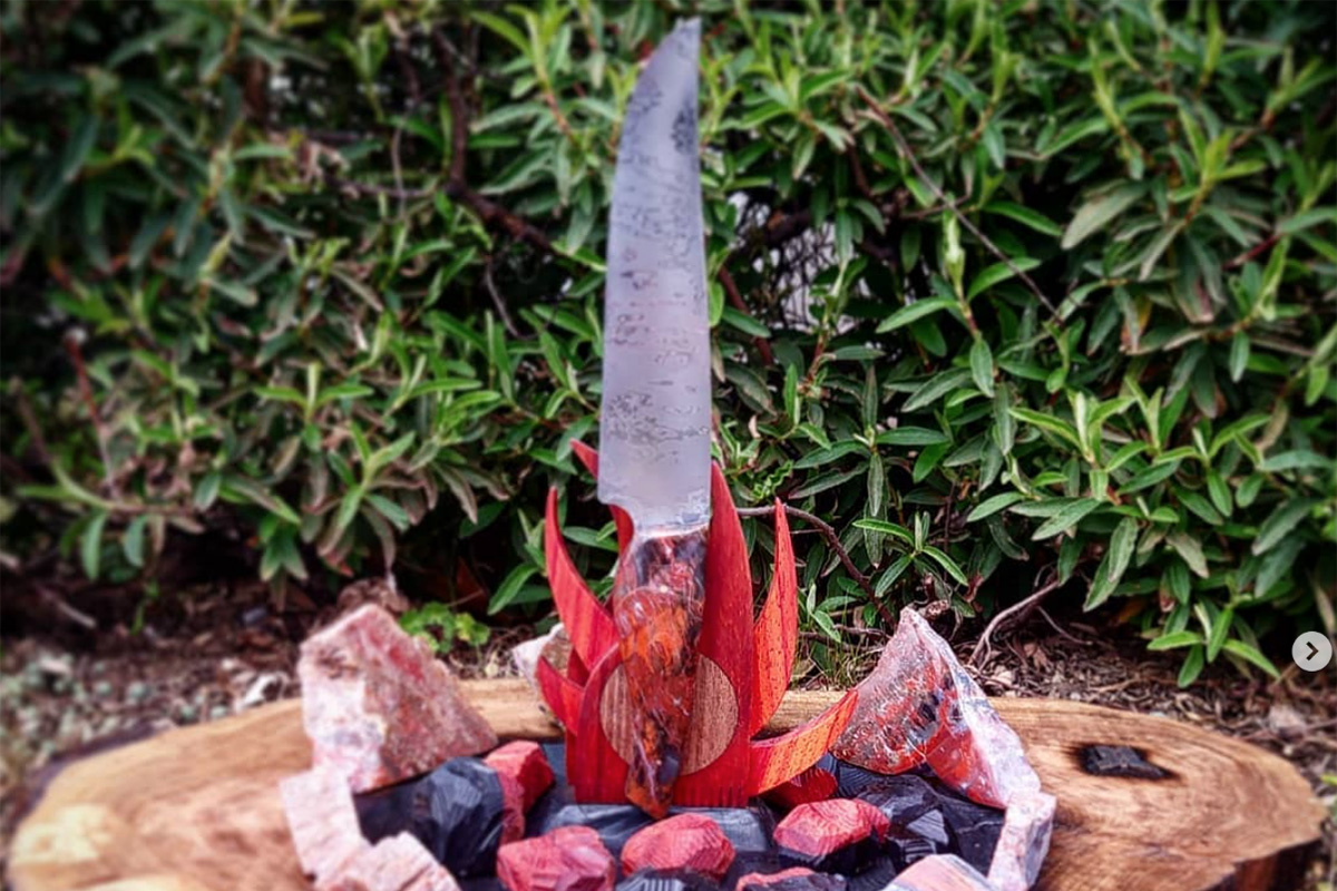 Passionné par le travail du métal, il réalise des couteaux et objets d’art forgés à la main, en utilisant des matériaux variés tels que des bois précieux, des roches originales, du cuir et des coquillages.