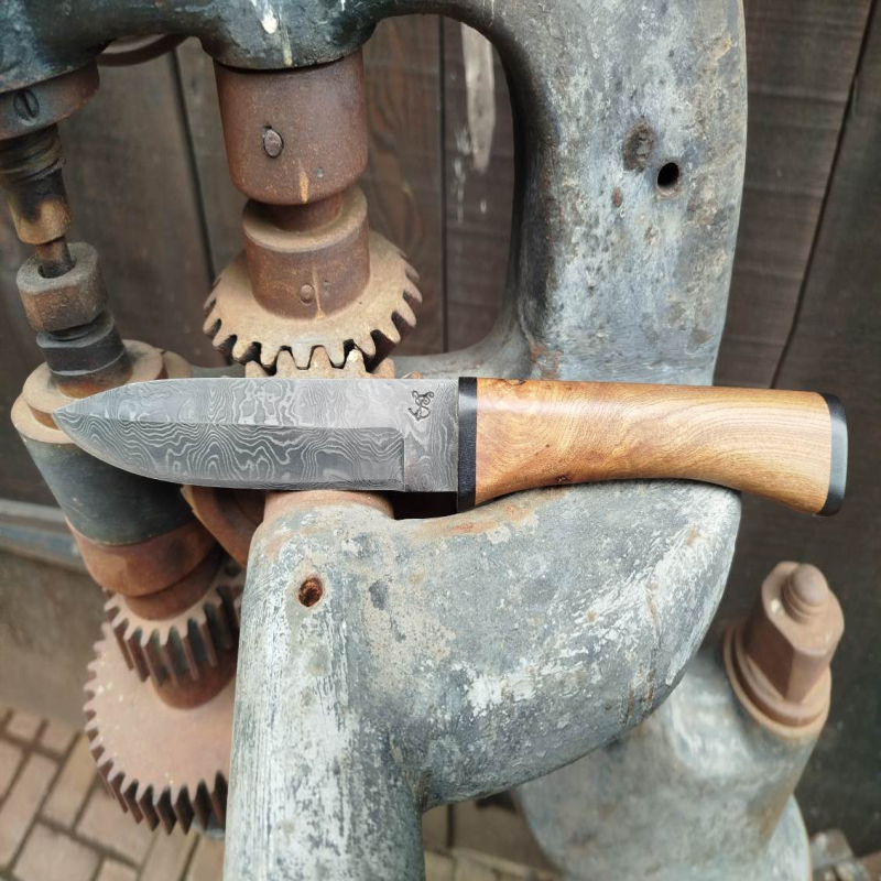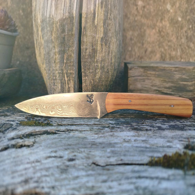Pour approfondir mes compétences, j’ai suivi une formation auprès de Christian Avakian, un maître coutelier d’art de renom, spécialisé notamment dans la fabrication de couteaux en damas, un acier aux motifs caractéristiques. Après plusieurs années de travail et de perfectionnement, j’ai ouvert mon propre atelier de coutellerie à Rosheim.