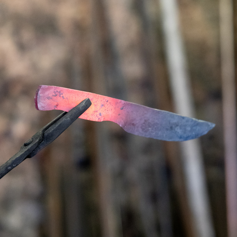 Ce stage permet de réaliser un couteau droit de A à Z. Il débute par l’élaboration d’un croquis afin de définir les dimensions et la forme du couteau, puis se poursuit par la forge de la lame. Vous découvrirez les bases de la forge à travers l’apprentissage du feu, du maniement du marteau, du travail de l’acier et du traitement thermique (trempe et revenu). Un second temps est dédiée aux finitions : travail au backstand pour affiner l’émouture, ponçage, perçage des platines, finalisation du traitement thermique et polissage de la lame. Vous réaliserez ensuite le manche, depuis le choix du bois jusqu’à sa découpe, sa fixation et son ponçage. Le stage se conclut par la finition du bois et l’affûtage du couteau.