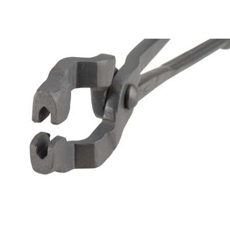 Pinces de forge en u décalé permettant de serrer la matière par le côté (permet de laisser dépasser la matière le long de la tenaille). Pour serrer des fers plats sur le chant section 10x6, 25x6, 38x6 ou 50x6 mm. Idéale pour la coutellerie et notamment la forge des soies.