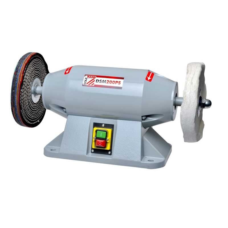 Touret à polir DSMV 200PS - 220V Mono, 900W, Holzmann, livré avec 2 frottes (1 coton souple + 1 toile jean).
